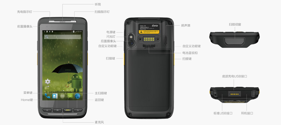 | 可選配件: | 充電座、底部充電卡夾、USB數(shù)據(jù)線(xiàn),電源適配器,硅膠保護(hù)套、單槽USB通信充電座、四聯(lián)充、三合一座充 |